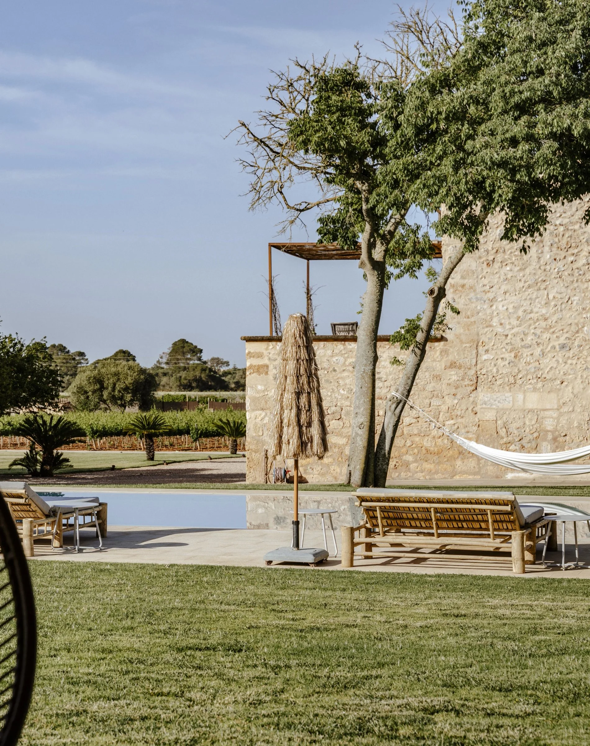 Nuestro exclusivo hotel boutique le ofrece la posibilidad de relajarse en la tranquilidad de la campiña mallorquina. Relájese en una tumbona junto a nuestra piscina de agua salada, en nuestro jardín bordeado de vides de las variedades endémicas de esta finca de 200 hectáreas. Disfrute de un desayuno gourmet, con sabores locales y de temporada, servido en forma de bufé en nuestra magnífica sala con su auténtico encanto, y de una refinada cena en la terraza con vistas a las vides de la finca al atardecer